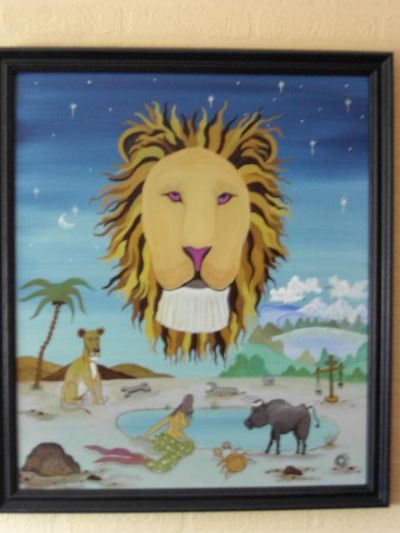 Bei diesem Bild ist das Sternzeichen Löwe als Hauptperson mit den Angehörigen Stier, Fisch, Waage, Krebs und Löwe.